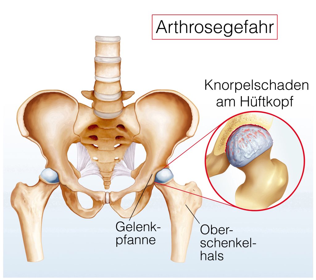 Kommt es zu einer regelmäßigen Überbelastung des Hüftgelenkes, zum Beispiel durch sportliche Aktivitäten oder berufliche Tätigkeiten, kann dies zu einem vorzeitigen Verschleiß des Knorpels führen und das Risiko an Arthrose zu erkranken steigt.